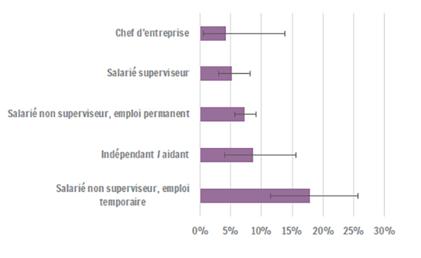 La privation matérielle et sociale ne touche pas de la même manière tous les travailleurs. Ainsi, ce sont surtout les salariés sous contrat temporaire qui doivent y faire face. À l’opposé, les chefs d’entreprise et les salariés qui supervisent d’autres travailleurs y sont moins souvent confrontés.