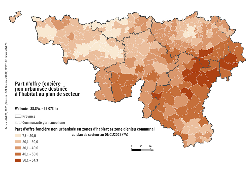 Note de l’IWEPS sur les terrains non urbanisés en zones urbanisables (potentiel foncier) en Wallonie : https://www.iweps.be/wp-content/uploads/2025/08/NoteMethodologiqueIWEPS_ODT_TNUZU_v2025.pdf